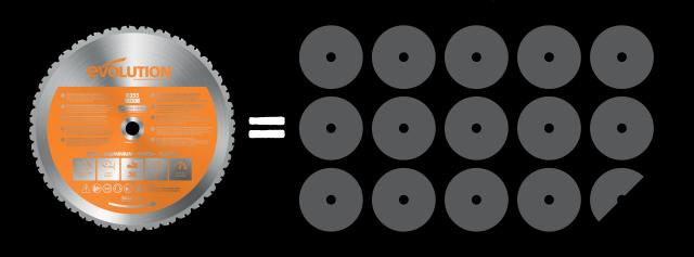 Jaká je životnost našich kotoučů? Naše 355 mm kotouče na vícero materiálů jsme otestovali a dosáhli jsme průměrně 1000 řezů na kotouč při řezaní čtvercových ocelových materiálů se tlošťkou 6 mm a rozměrem 50x50 mm! Při použití stejných testovacích kritérií dosáhl bežný řezný abrazivní kotouč jen 69 řezů. To znamená, že jeden kotouč Evolution vydrží stejně dlouho jako 14,5 bežných řezných kotoučů, co znamená, že naše pokročilé TCT kotouče nabízí nižší cenu na řez v porovnaní s řeznými abrazivními kotouči. Důležité je taky použít řezný olej.