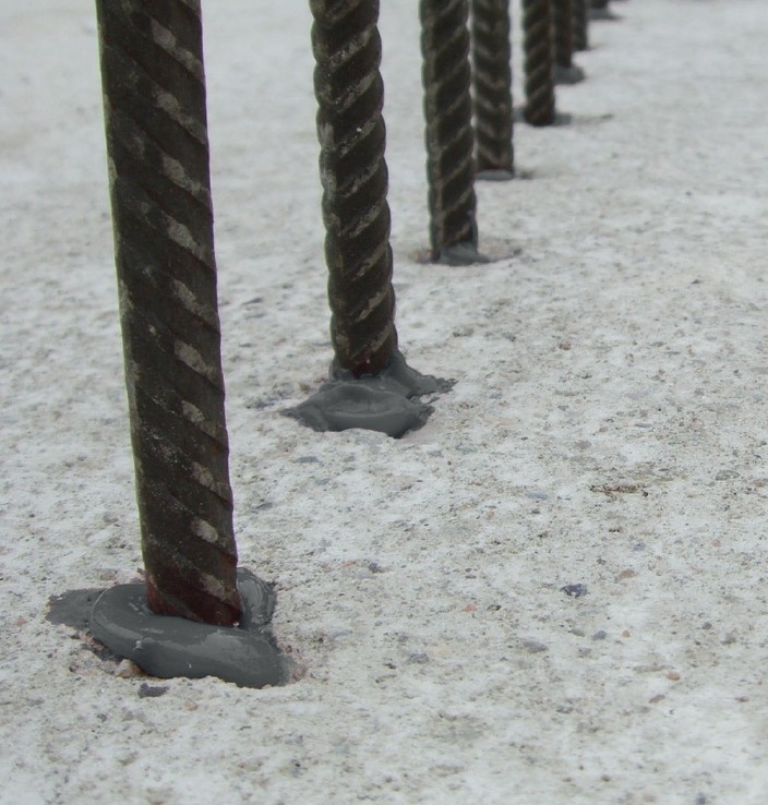 • vlepování závitových svorníků, závitových tyčí, pouzder s vnitřním závitem a betonářské výztuže