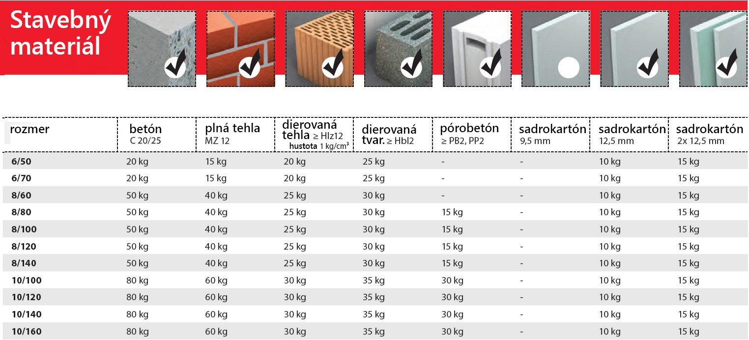 Předmontovaná prodloužená hmoždinka do všech stavebních materiálů. VLF-S1