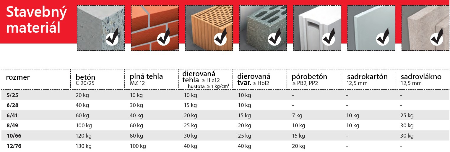 - Sádrokarton , Porobeton , Plná cihla , Děrovaná cihla , Betonová tvárnice , Beton a kámen