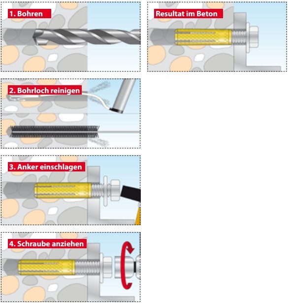 Mosazná stropní rozpínací kotva s vnitřním závitem do plných stavebních materiálů. MSD