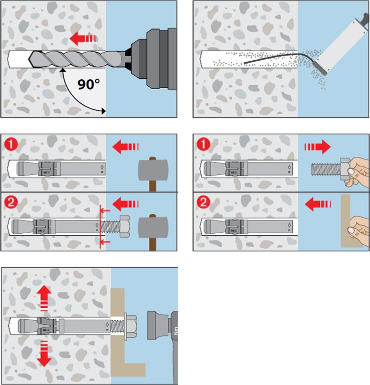 • kotvení nosných ocelových konstrukcí, konzol, technologických, signalizačných a zabezpečovacích zařízení atd.