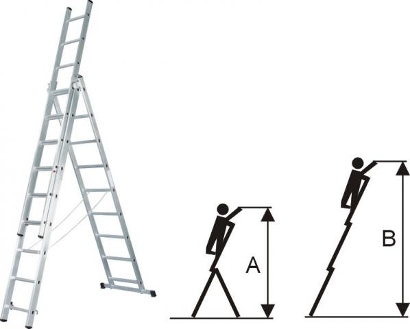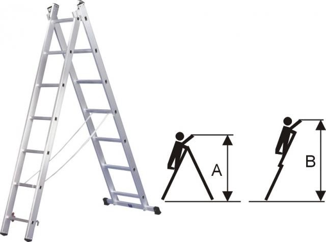• Žebřík je složen z 2 (příp. Z 3) navzájem propojených dílů, přičemž užší část žebříku je možné vysunout navrch