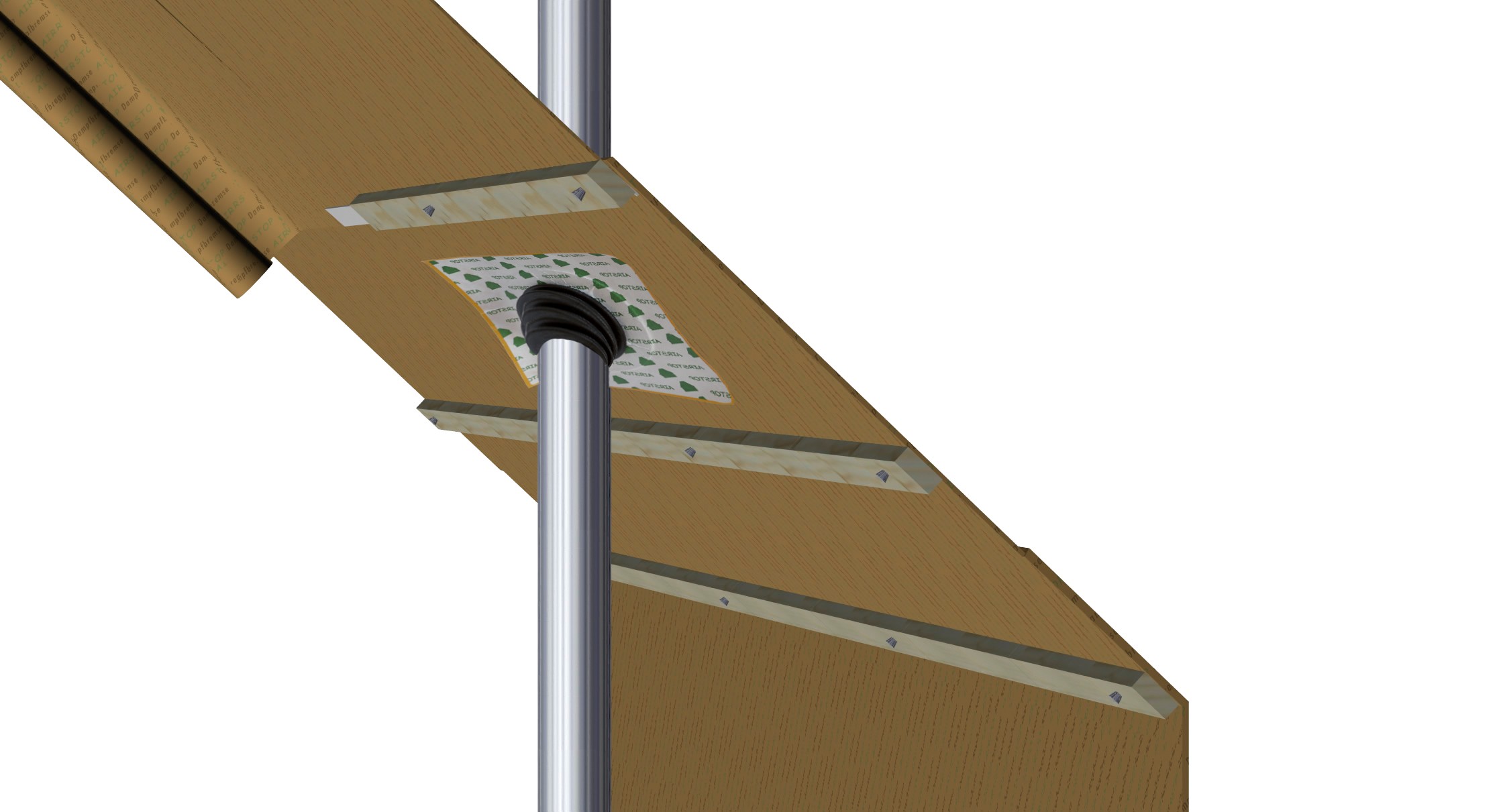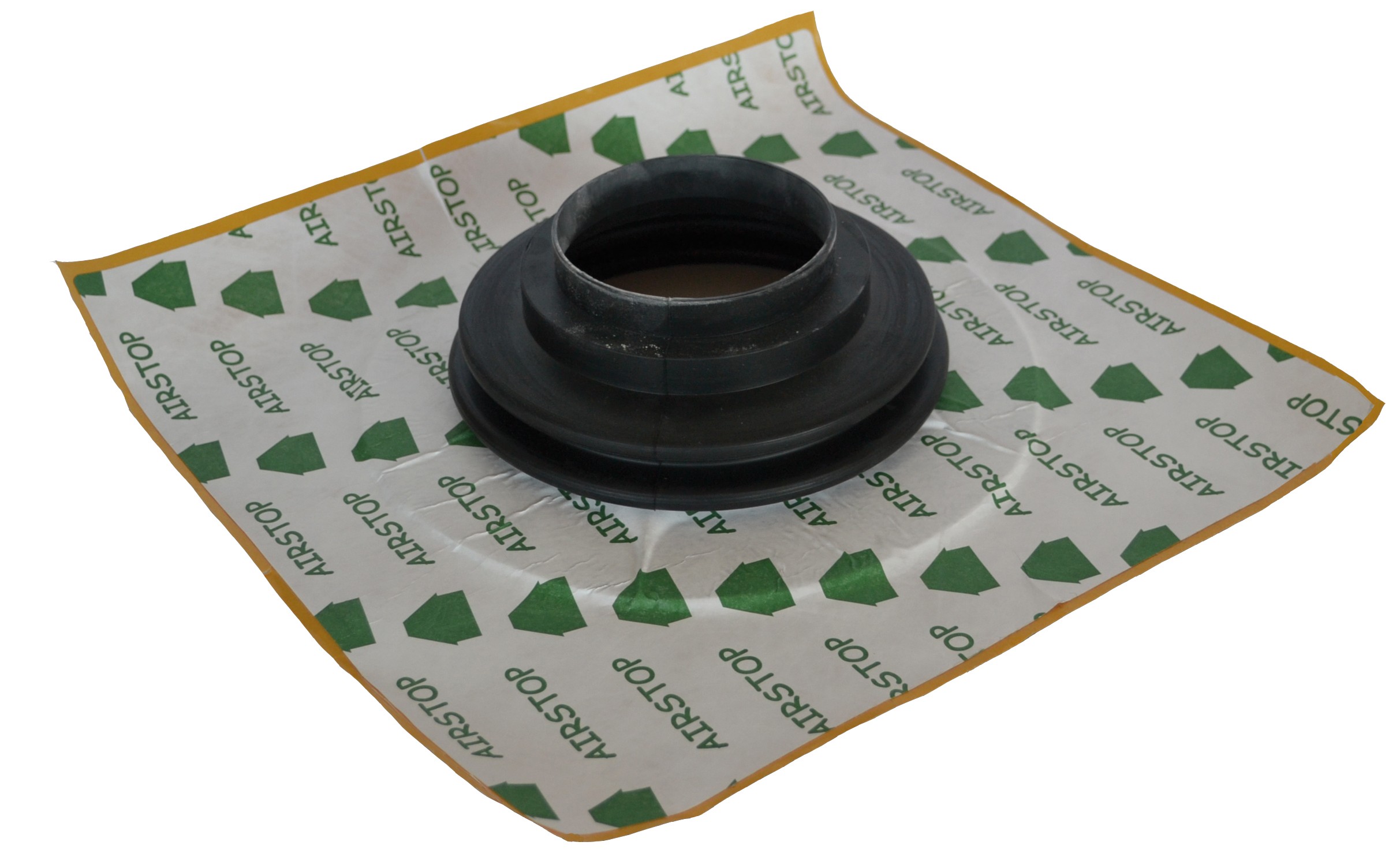 Těsnicí manžeta k trvalému vzduchotěsnému a parotěsnému utěsnění otvorů a průchodů potrubí v konstrukcích.